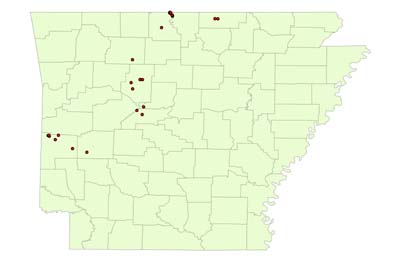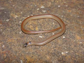 Each year Dr. Trauth takes a group of students on a field trip that covers a large portion of the state of Arkansas (see the map of sites visited below). Each year the students target a particular species or habitat type. This year we took a northern route in order to visit a number of glades that have not been surveyed for over 10 years. Often times, natural history observations are made that lead to new research projects. We even occasionally make observations that are immediately publishable. During the 2005 field trip we found a ground snake, Sonora semiannulata. This was the first specimen of the species that has been found in the state in over 50 years, and a 5 county eastward range extension within Arkansas. This record was submitted for publication to Herpetological Review (Milanovich et al. 2005), the Quarterly Newsletter for the Society for the Study of Amphibians and Reptiles.